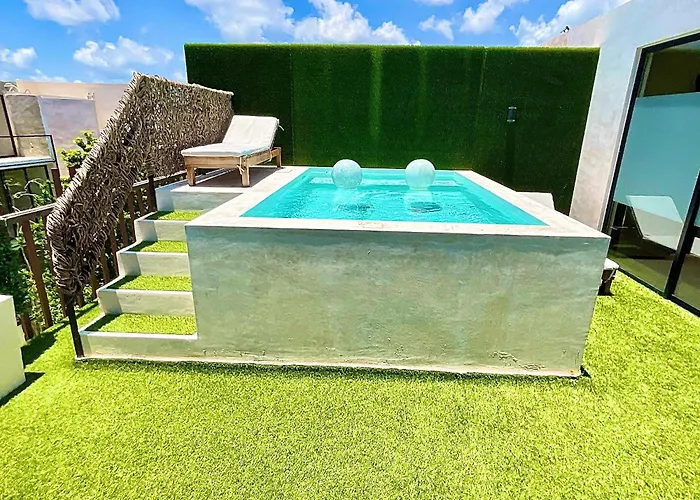 Providing pool outlooks, the 1-room Heart & Soul Ph Suite Tulum ensures guests have access to a storage room. Aeropuerto de Playa del Carmen airport is also located 95 km from the apartment.